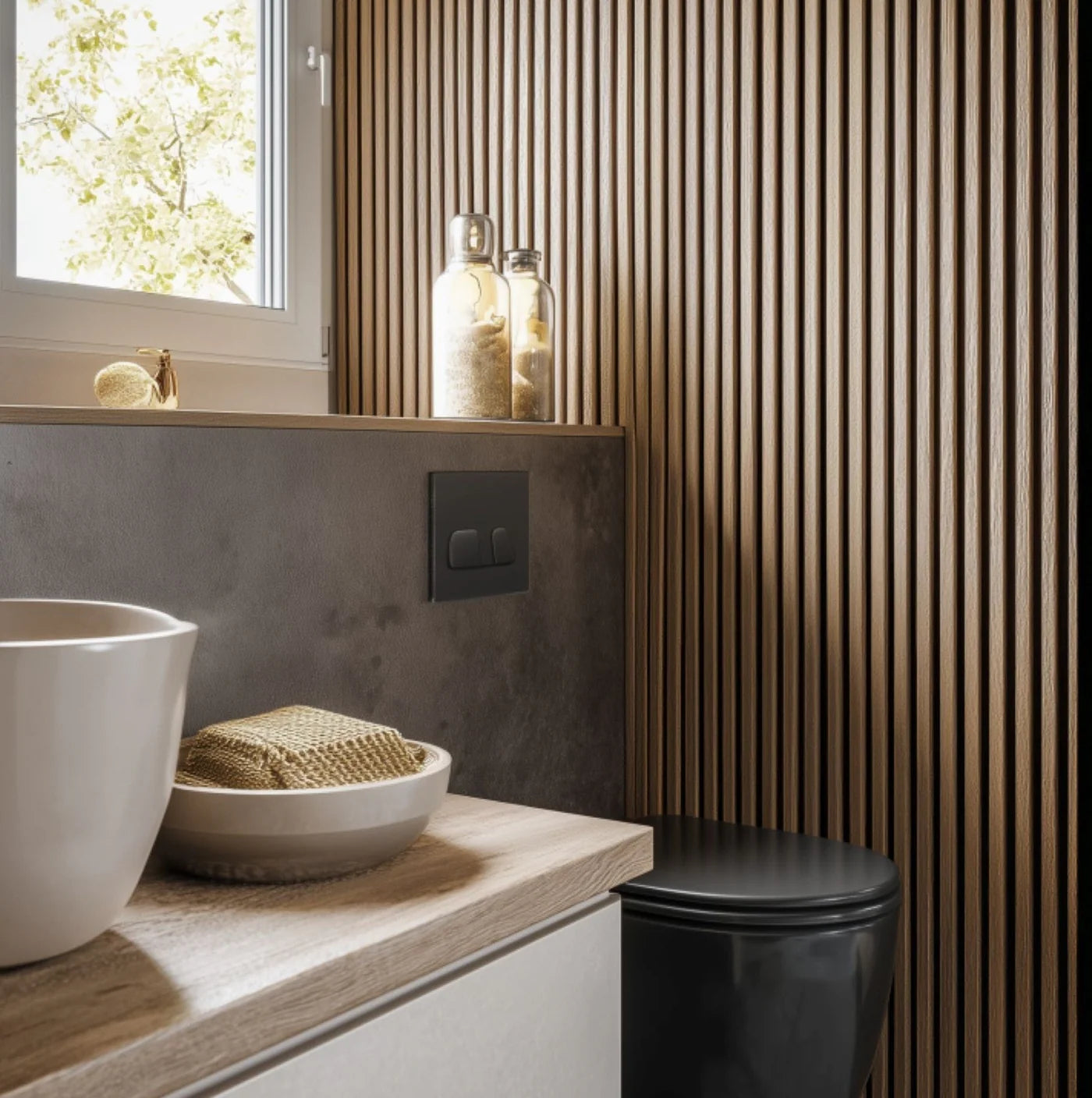 Ge ditt badrum en känsla av exklusivitet och värme med äkta trä. Med våra specialanpassade akustikpaneler för badrum kan du nu klä väggarna i vackert trä som inte bara höjer stilen, utan också dämp...